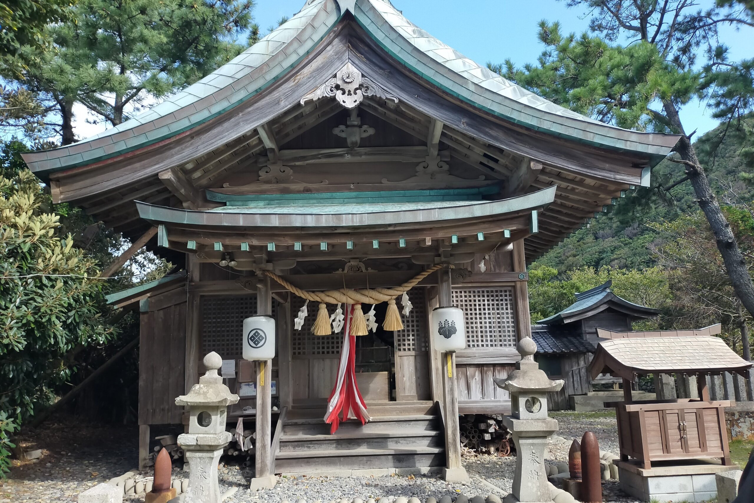 余計なものがないぶん、かえってスピリチュアルな空気を感じます。よく見ると、神社の背後には白嶽の山頂(雄岳と雌岳)が姿を見せています。