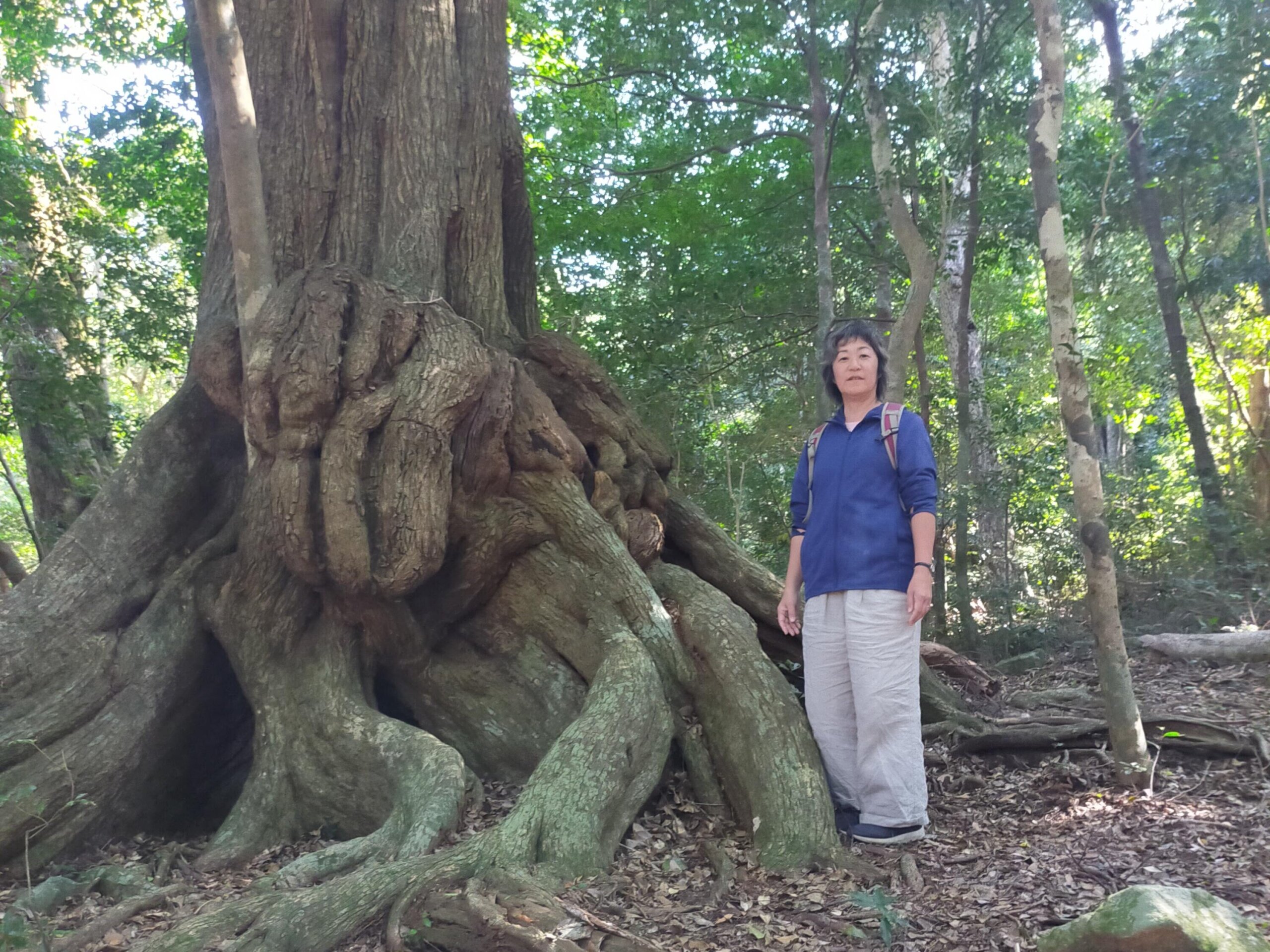 まるで生きているような曲がりくねった根っこ、今にもおじいさんの顔で話し出しそうなこの木の名前は「スダジイ」。