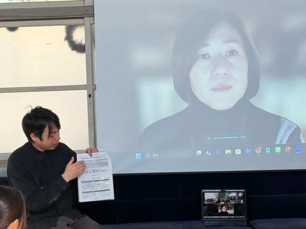 2日目:耕作放棄地の課題に取り組む草刈りツーリズムの亀井愛子さんの講義をオンラインで受ける。