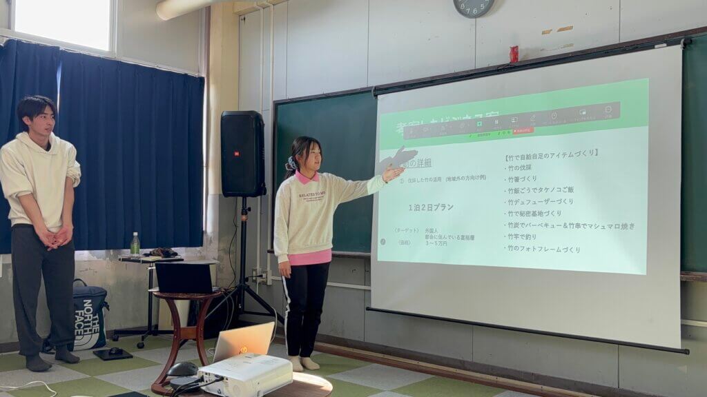 全体:桜島で3日間にわたり、2人1組のチームになって、地域課題を解決するビジネスプランを作り、最後に市役所職員に発表。