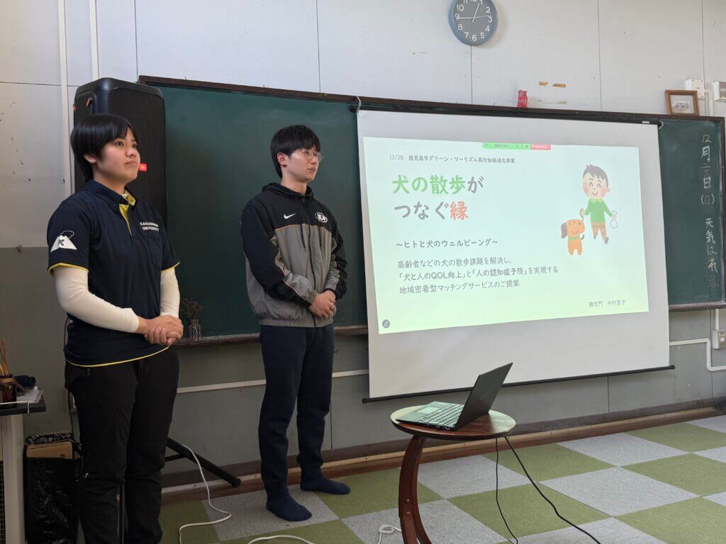 大学の冬休みを利用しての実施となったこのプログラムには鹿児島大学の学生(2年生、3年生)4名が参加し、2チームに分かれてビジネスプランを創作し、最後に鹿児島市役所の職員に向けたプレゼンを行いました。