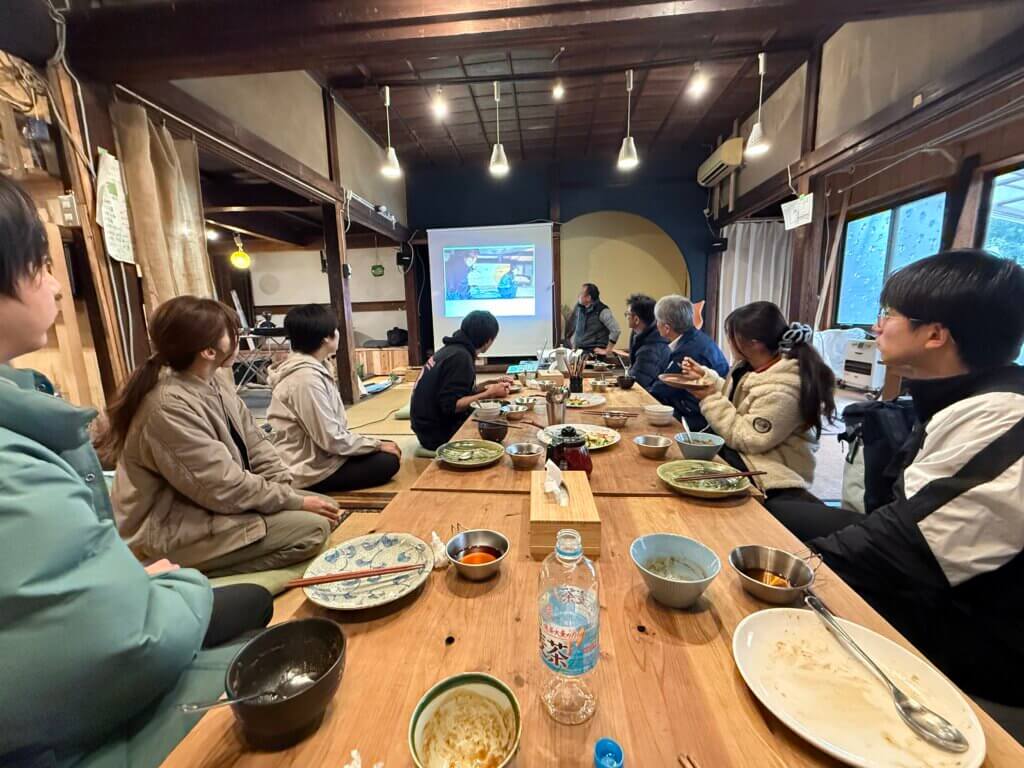 約3時間のセッションののち、桜島に移動し、宿泊施設である「Ikoてらす」にチェックイン。今度はメンバーでの夕飯タイム。ディナーのオードブルに汁物を足したり、ご飯を炊いたりすなど、楽しく調理体験もしました。夜は男女に分かれて就寝。男性は「ikoてらす」、女性は「umiのてらす」に宿泊しました。